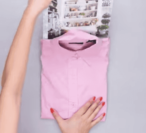 將一本書(shū)放在襯衫后面,然后將肩部和袖子如圖那樣折起來(lái);