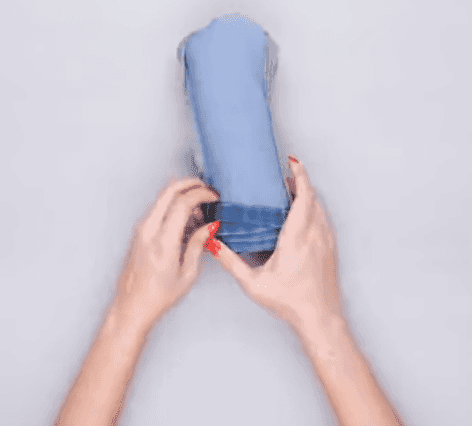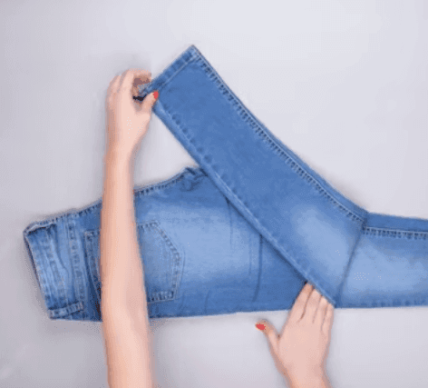 將折起來(lái)的褲腿翻過(guò)來(lái),套住整個(gè)牛仔褲。收納就完成了~
