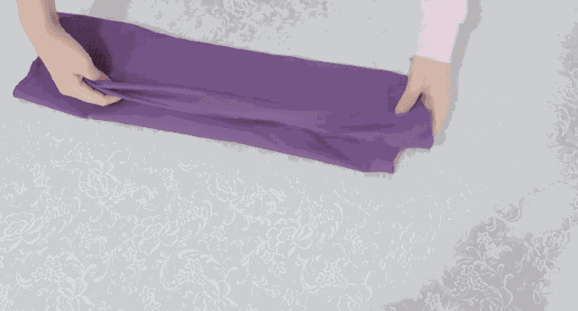然后將裙子兩邊向中間對(duì)折,使寬度更窄。接下來(lái)再將裙子一側(cè)往上翻折一下,從而形成一個(gè)口袋,另一側(cè)也折起,塞入剛剛折好的口袋里。