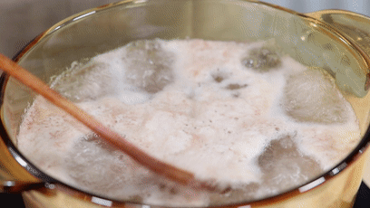 米面中的淀粉也會(huì)有一些溶到水中,增加水的黏度。高黏度的湯有助于泡沫的穩(wěn)定存在,也就是說(shuō),湯的黏度越高,泡沫可能越多。