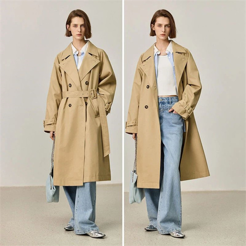 寬松的風(fēng)衣搭配寬松的牛仔褲