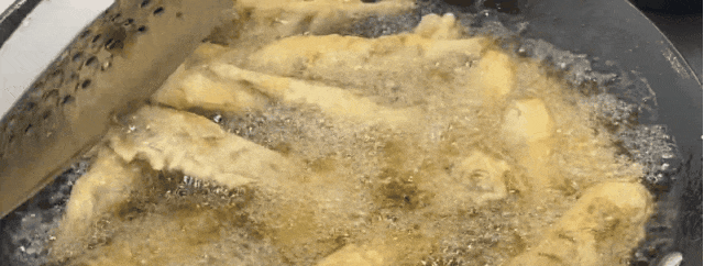 03、腌好的小黃魚裹一層面糊,油溫5成熱把小黃魚放進來,先中小火翻炸,將魚炸熟。再轉(zhuǎn)大火將魚炸至表面金黃酥脆就可以控油撈出了。
