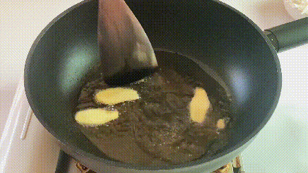 01、開(kāi)小火熱鍋,炒肉不粘鍋的秘訣就在于一定要熱鍋冷油;鍋燒熱后倒油,下蔥段姜片炒香至微微變色。