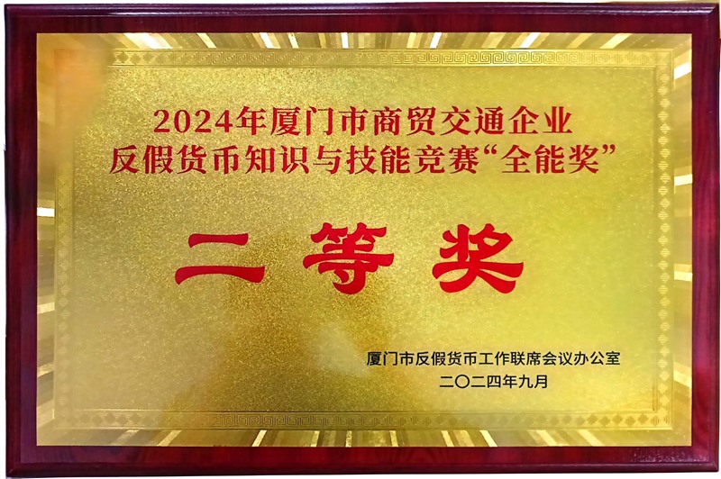 2024年廈門市商貿(mào)交通企業(yè)反假幣知識(shí)與技能競(jìng)賽“全能獎(jiǎng)”二等獎(jiǎng)