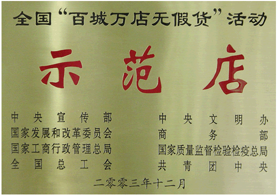 全國“百城萬店無假貨”活動示范店