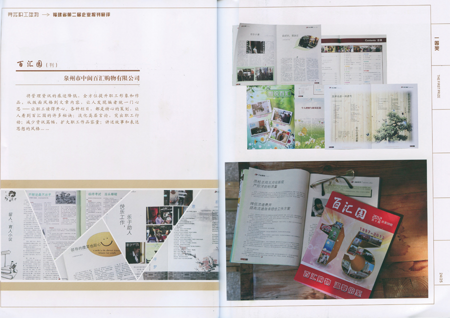 熱烈慶祝中閩百匯企業(yè)內(nèi)刊《百匯園》榮獲福建省第二屆企業(yè)報刊一等獎