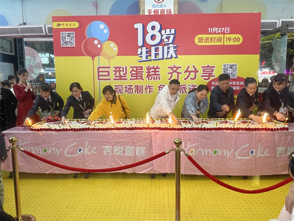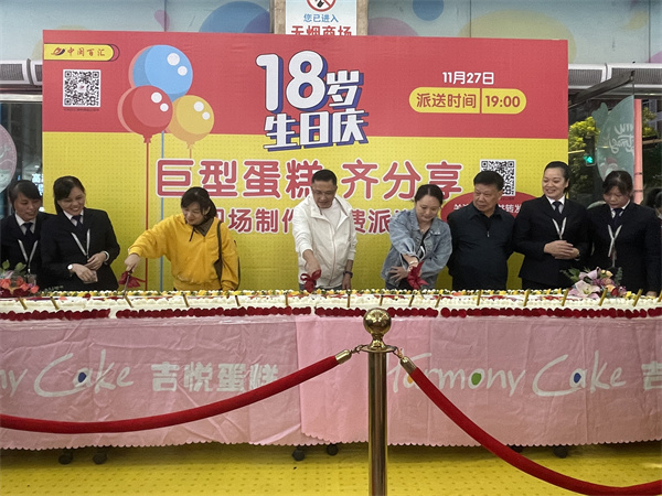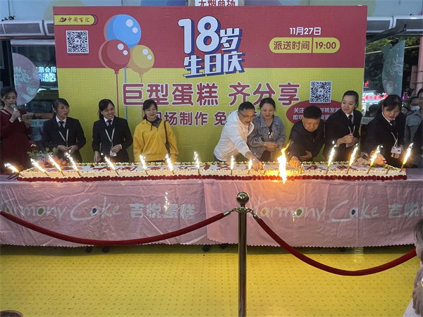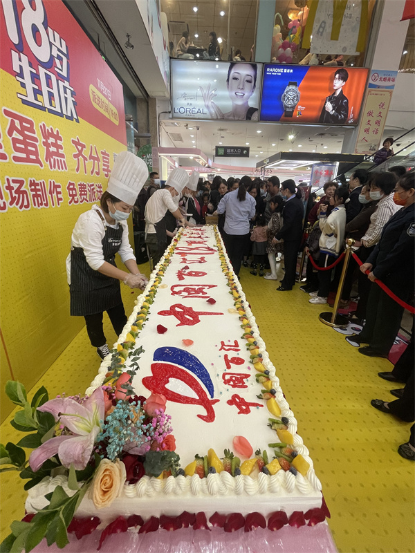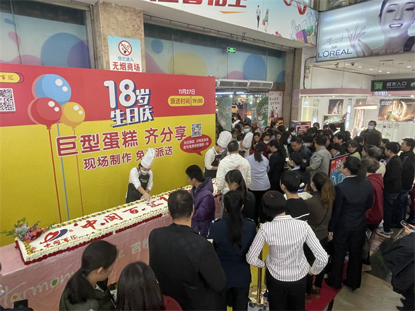 11月27日,為慶祝門店開業(yè)18周年,漳州店邀請蛋糕師現(xiàn)場制作香甜可口的巨型蛋糕,顧客可現(xiàn)場觀看蛋糕的制作過程,并在制作完成后進(jìn)行派發(fā),伴隨著一曲歡樂的《生日快樂》歌曲,與顧客一起分享品嘗,一同感受這份歡樂與感動。此活動不僅營造店慶歡樂的活動氛圍,同時帶動了商場客流量。