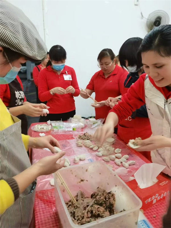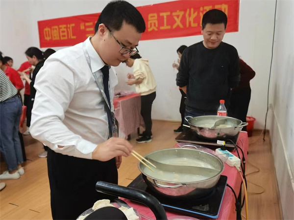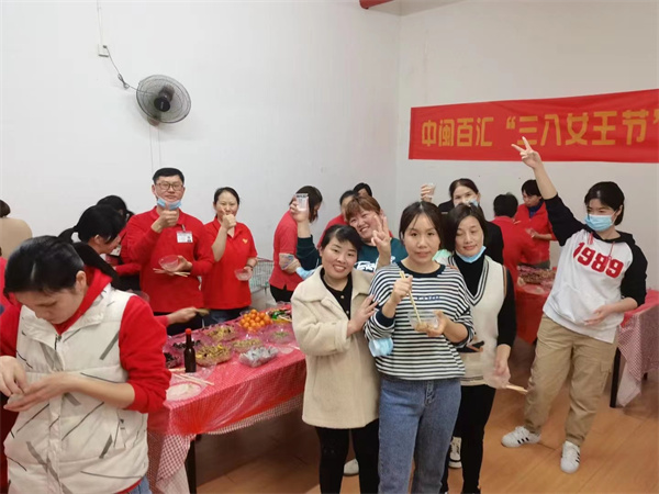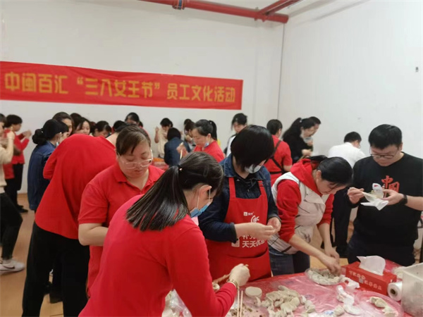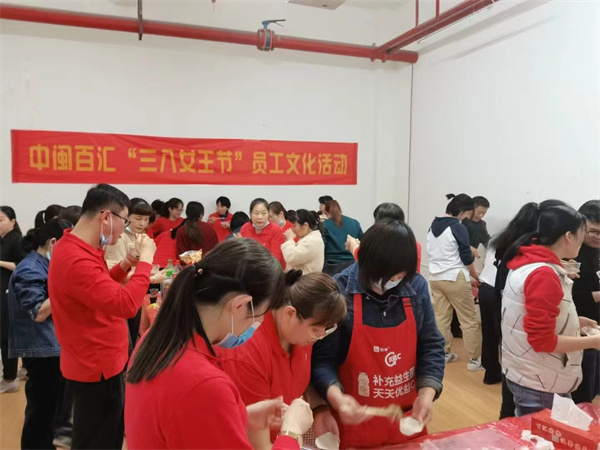 中閩百匯新華店舉行”三八女王節(jié)“員工包水餃活動