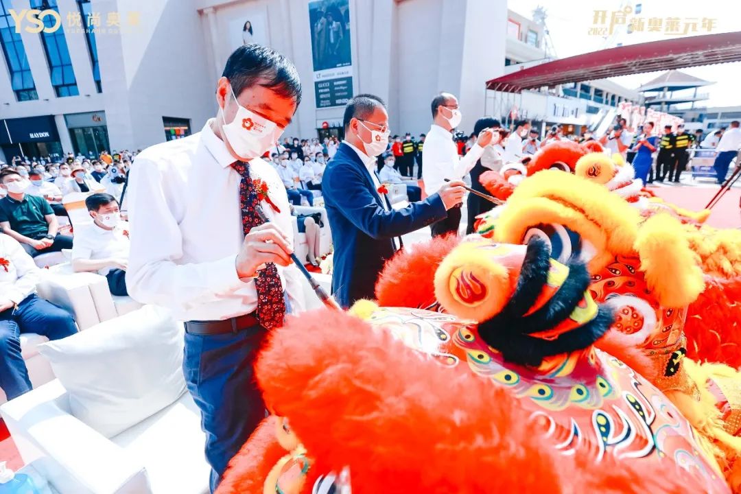 吳建元書記、李亞萍副秘書長、計佳萍主任、鄧加紅主席、鄭德友書記、黃連春董事長、陳開通總裁,以及王亞君女士、鄭勤剛副總裁、錢平總經(jīng)理10位領(lǐng)導(dǎo)共同為祥獅點睛,為悅尚奧萊開啟鴻運和祥瑞。