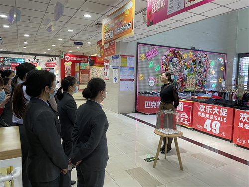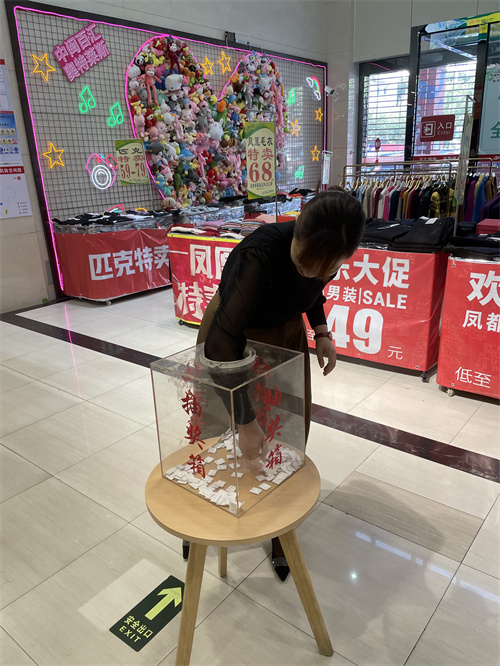 3月8日,門店在一樓早會上開展“三八女王節(jié)”員工抽獎活動,由店長、現(xiàn)場部經(jīng)理、市場部經(jīng)理抽取出一等獎2名、二等獎5名、三等獎10名,此次活動現(xiàn)場氣氛緊張又熱鬧,提高了員工的企業(yè)歸屬感,營造了節(jié)日的氣氛。