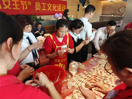 3月9日,門店在一樓德克士旁租賃商鋪舉行“三八女王節(jié)”員工包水餃活動(dòng),員工們?cè)跉g樂(lè)的節(jié)日氛圍中開展包水餃活動(dòng),一起慶?!叭藡D女節(jié)”的到來(lái)。此次活動(dòng)豐富了員工的業(yè)余生活,提高了員工的企業(yè)歸屬感,營(yíng)造了節(jié)日的氣氛。