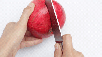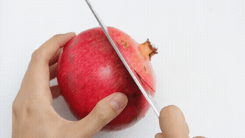 在石榴的底部橫切幾刀,然后輕輕地將石榴的厚皮蓋拿掉。