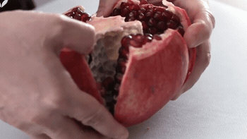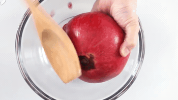 然后取一個(gè)碗,將石榴倒扣在上面,拿一勺子敲幾下石榴,果肉就自動(dòng)脫落!