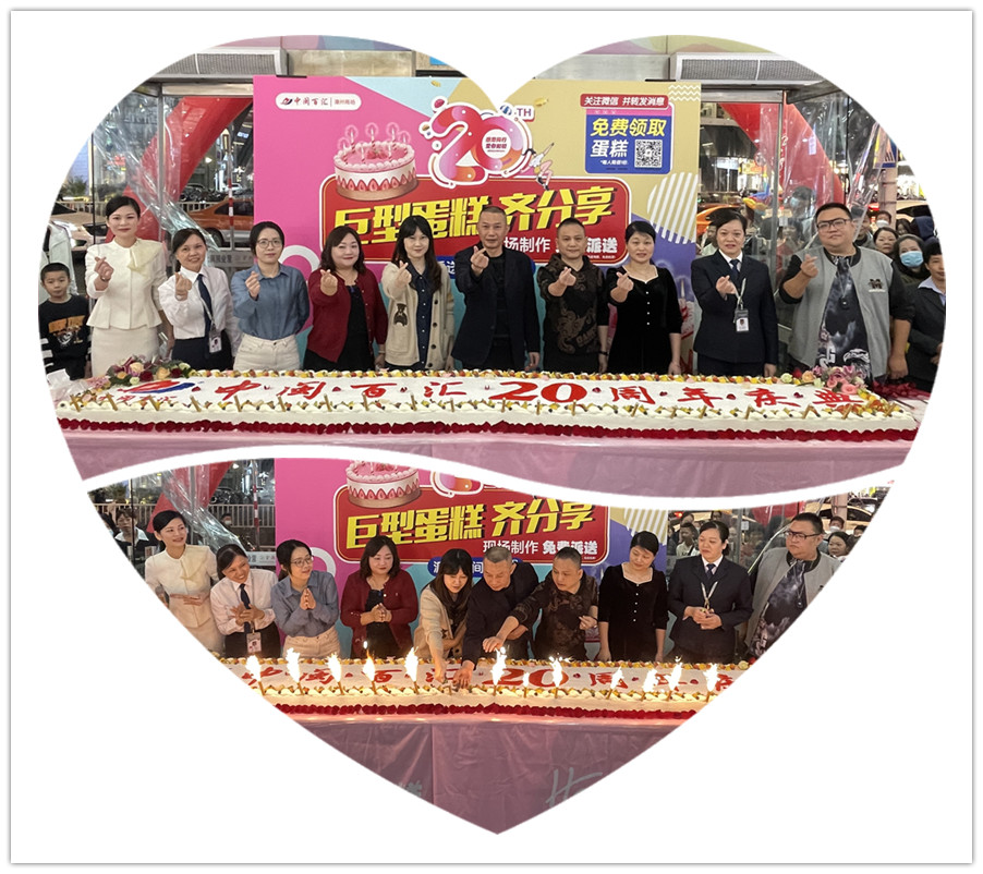 2023年11月25日,金色深秋,遇見最美的成長。為慶祝門店開業(yè)20周年,門店邀請蛋糕師現(xiàn)場制作巨型蛋糕,伴隨著溫馨的生日祝福歌曲,由商場管理者們派發(fā)與顧客一同分享、品嘗。