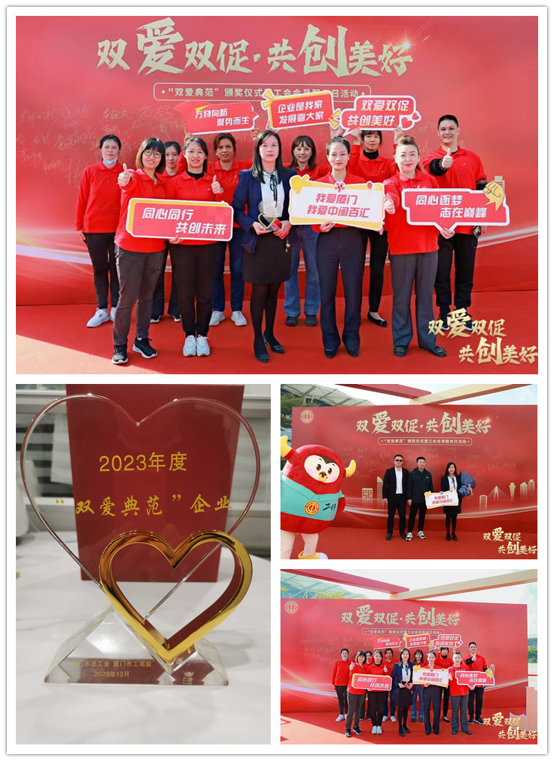 2023年12月30日,廈門市總工會(huì)、廈門市工商聯(lián)共同舉辦的“雙愛雙促·共創(chuàng)美好”頒獎(jiǎng)典禮在廈門五一廣場(chǎng)隆重舉行。公司工會(huì)主席饒麗鳳及10名志愿者應(yīng)邀參加此次盛會(huì),并接受“2023年度雙愛典范企業(yè)”榮譽(yù)。